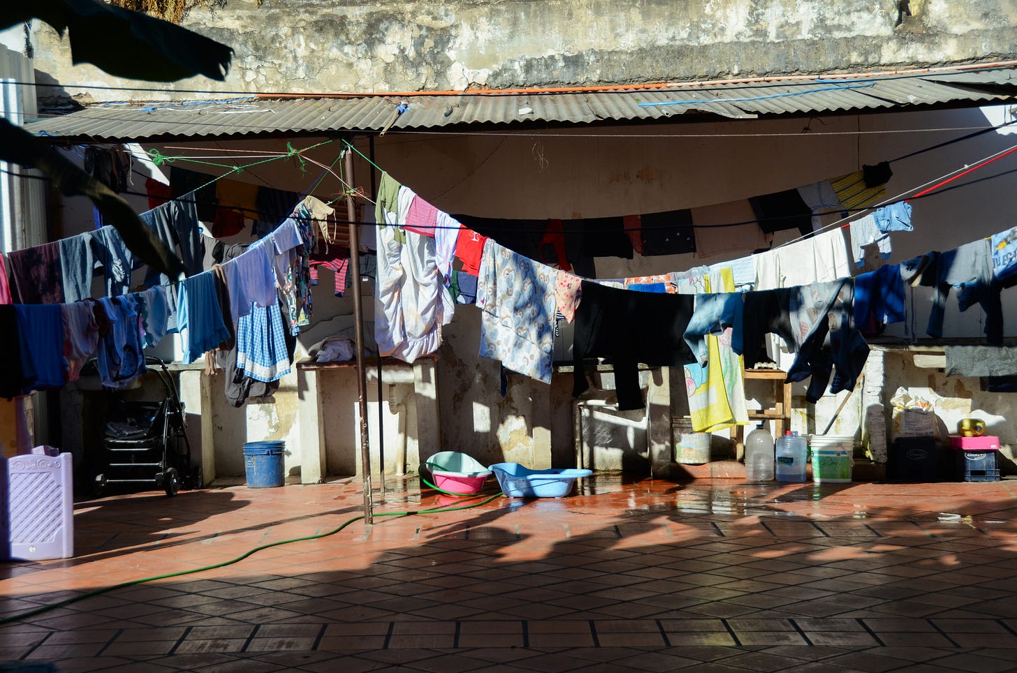 A su lado, la respiración tranquila del bebé de una compañera, duerme sobre su regazo. Según cuentan, ese peso cálido las anclan a la tierra y pueden olvidar, por un momento, que su mundo es una isla de cemento.