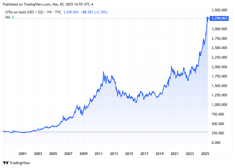 Having already tripled to $3200 per ounce in the space of a decade, forecasters think the international gold price could reach $6000 per ounce by 2029 as investors seek a safe haven from global economic turmoil in the precious metal.